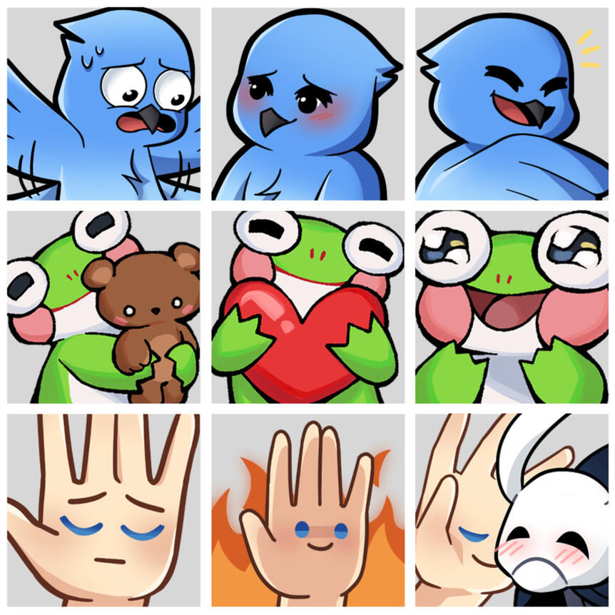 Emotes to be used for Twitch/Discord. Comes in sizes 112px, 56px, 28px.